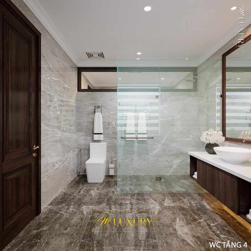 Vách tắm kính có góc 90 độ và đảm bảo sự chắc chắn và an toàn khi sử dụng.